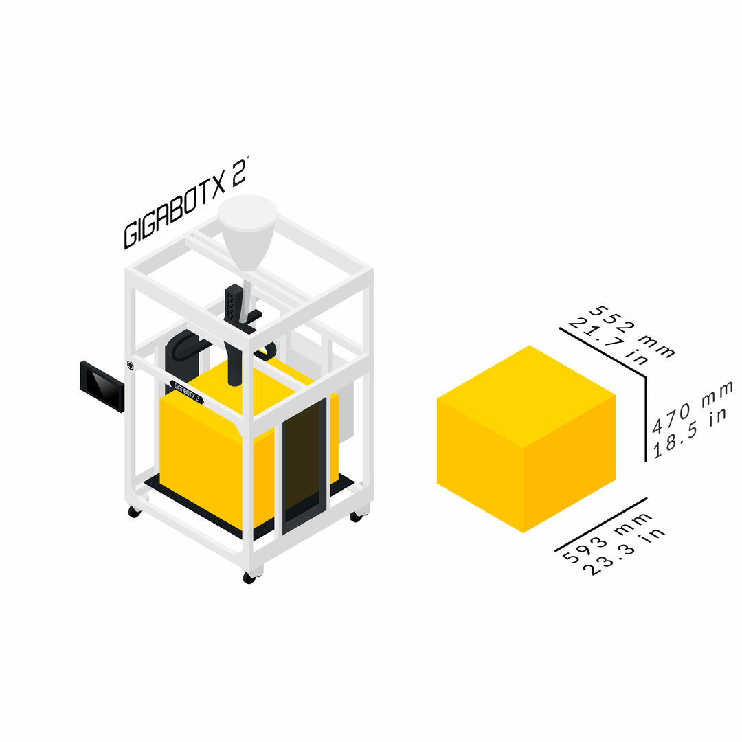 GigabotX 2 Build Volume 552 x 593 x 470 mm | 22 x 23 x 19 mm